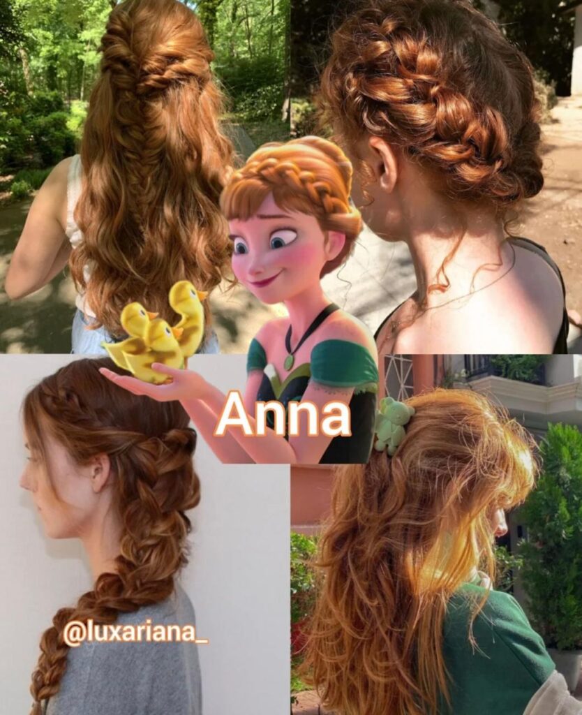 Elsa’s side-swept French braid is one of the most replicated Disney hairstyles—elegant yet powerful.