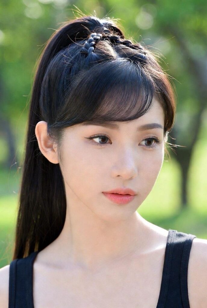 - For a soft, feminine look: The side-swept bangs ponytail or ribbon-tied style.